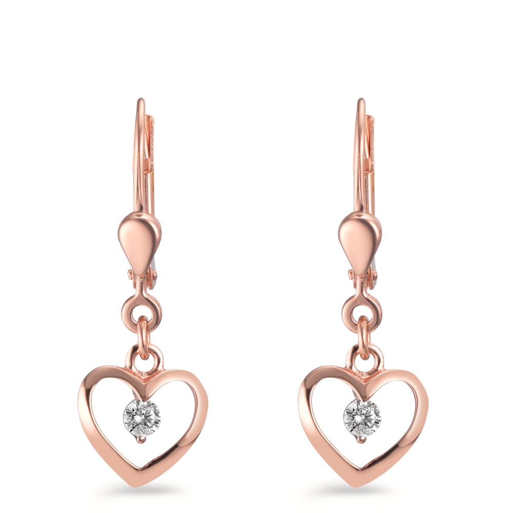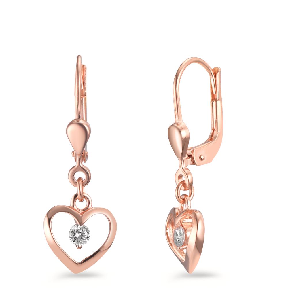 Drop Earrings Silver Zirconia 2 Stones Rose Gold plated Heart Ø9 mm