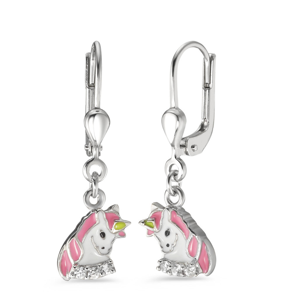 Drop Earrings Silver Zirconia 6 Stones Lacquered Unicorn