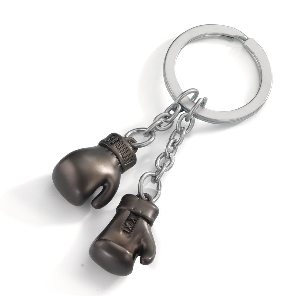 This metal keychain features two detailed boxing glove charms, making it a perfect accessory for boxing fans or athletes. Durable and stylish, it's an ideal gift or a way to show your passion for the sport every day. Compact and lightweight for easy carrying.