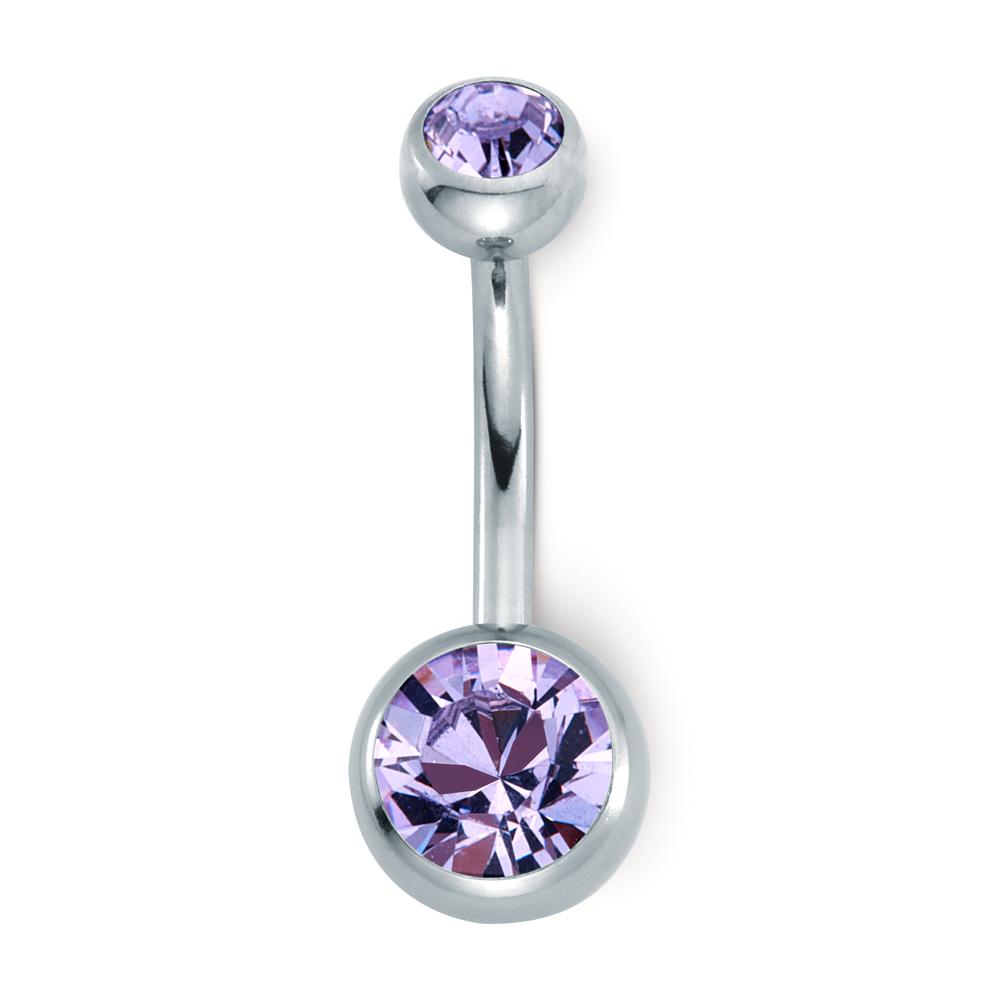 Navel piercing Stainless steel Crystal Lavender, round, 6 mm