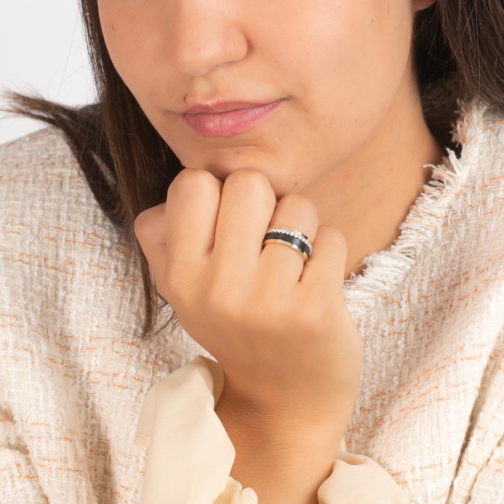 Elegant women's ring set crafted from yellow gold, white gold, and titanium, featuring brilliant diamonds that add a touch of sparkle. This modern design combines durable materials with timeless luxury, perfect for any occasion or as a special gift.