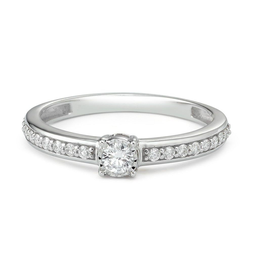 Solitaire ring 9k White Gold Diamond 0.20 ct, 19 Stones, w-si