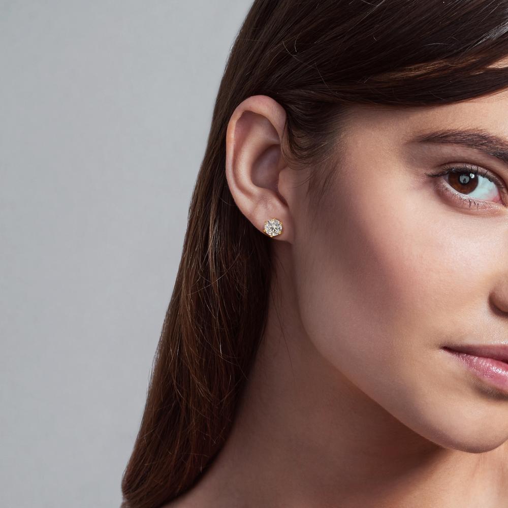 Elegant women's stud earrings crafted from 18k yellow gold, featuring brilliant lab-grown diamonds. These timeless and ethical earrings offer a stunning sparkle and sustainable luxury, perfect for everyday wear or special occasions. Classic design for lasting beauty and style.